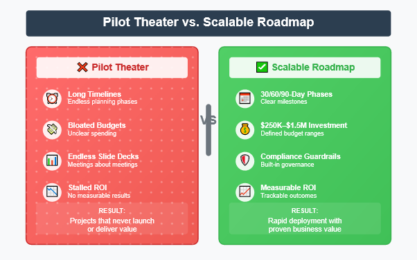Large consulting roadmaps stretch 18 months while business teams wait for measurable ROI.