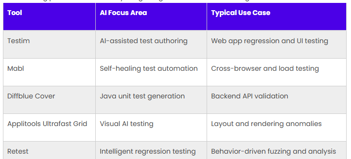 The following platforms are actively integrating AI to extend test coverage: