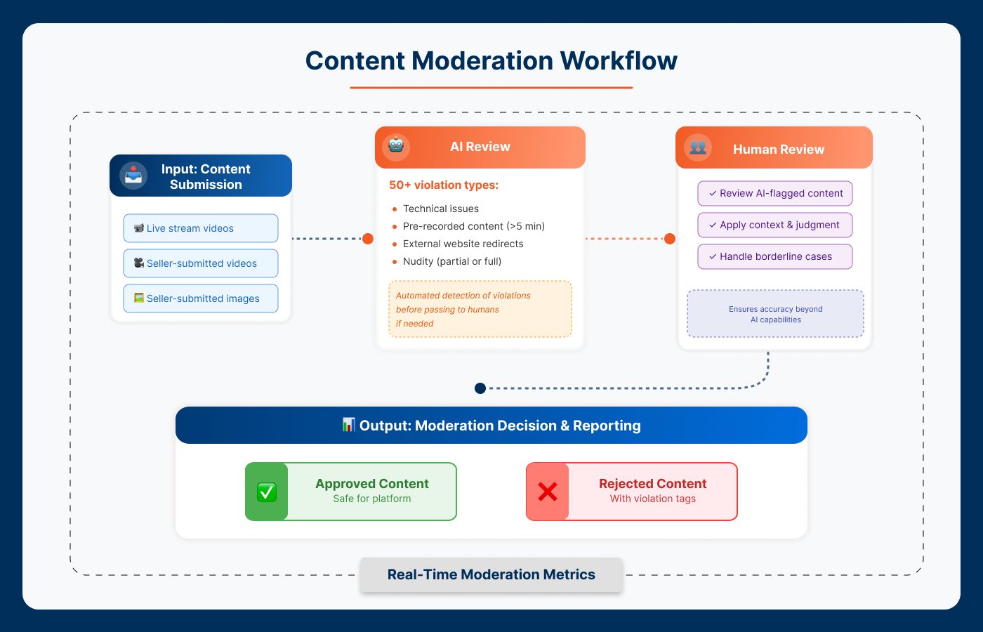 - Human-in-the-loop oversight for UAT, moderation, and exception handling