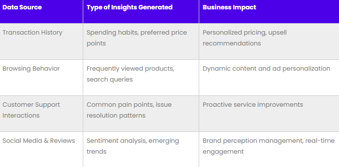 Modern businesses collect vast amounts of structured and unstructured customer data from various sources:
