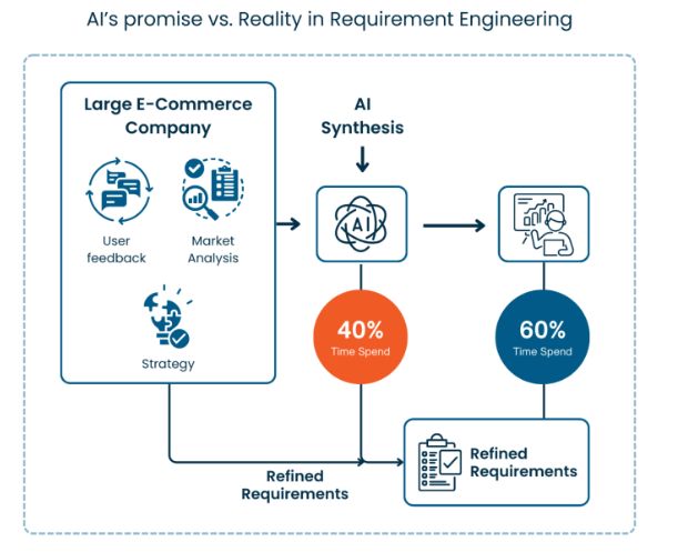 The team reduced initial feedback synthesis time by roughly 40%, but human review and refinement still accounted for about 60% of the total effort—critical to ensuring that requirements truly reflected user needs and business priorities.