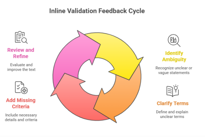 - Automated Improvement Suggestions: The system recommends better phrasing, highlights inconsistencies, and flags testability issues.