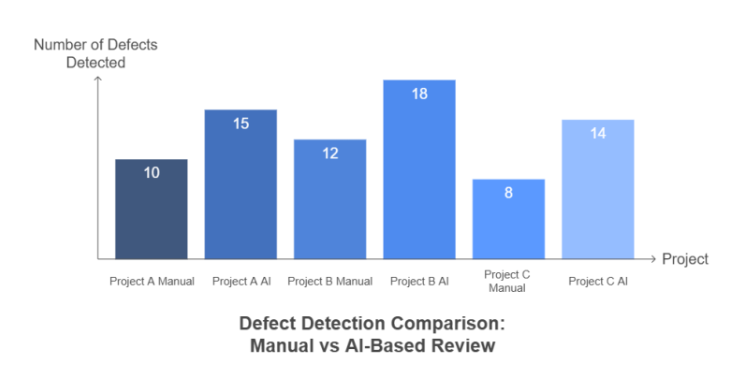 - Defect Detection Rates: Tracks number of issues detected by AI vs. manual review.