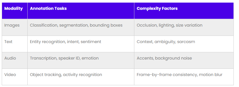 Manual labeling methods no longer scale. They falter under growing data volumes, modality complexity (text, image, audio, video), and rising quality demands from today’s AI applications.