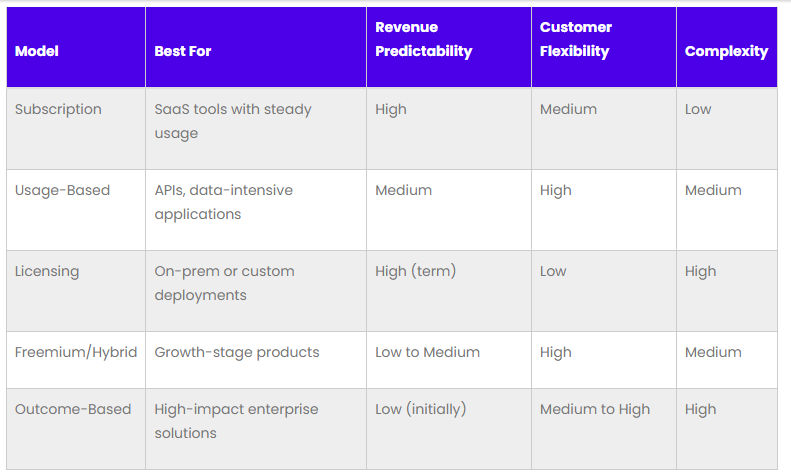 - Freemium + Usage-Based: Free up to a usage threshold, then pay-as-you-go.